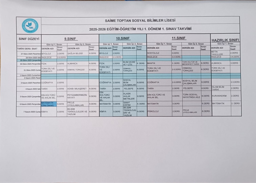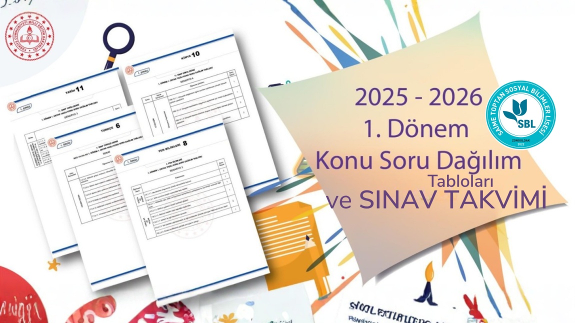 1. DÖNEM 1. SINAV PROGRAMI 27 EKİM İLE 7 KASIM 2025 TARİHLERİ ARASINDA UYGULANACAK ŞEKİLDE PLANLANMIŞTIR. 6 KASIM'DA 9. SINIFLAR ÜLKE GENELİ MATEMATİK SINAVINA GİRECEKTİR. SINAV PROGRAMI VE KONU SORU DAĞILIM TABLOLARI LİNKİ HABER DETAYINDA PAYLAŞILMIŞTIR.